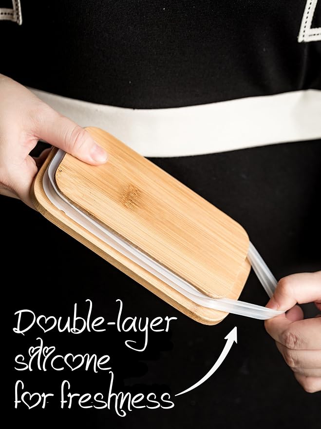 - Upgraded Butter Holder: Our covered butter dish upgraded with high-quality double-layer silicone seals for superior freshness preservation, ensuring you enjoy the fresh taste every time.