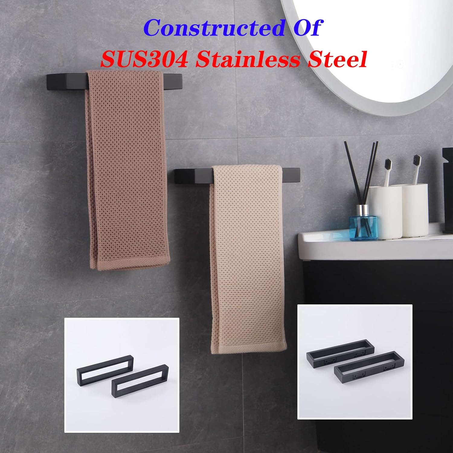 GERZWY Modern Black Towel Holder Stainless Steel Towel Ring for Bathroom Lavatory Wall Mount Contemporary Style 2 Pack HG1716-2BK