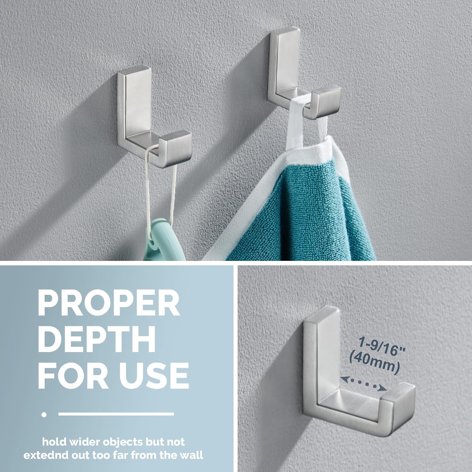 Angle Simple Bathroom Towel Hooks, SUS 304 Stainless Steel Compact Robe Coat Hooks for Wall, Brushed Nickel, 2 Pack