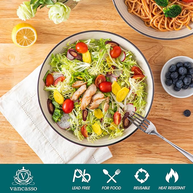 - 【Multifunctional Pasta Bowls】 These shallow bowls set are suitable for soups, cereal, burrito bowls, stir fries, seafood, stews, casseroles, and more. vancasso pasta bowls are suitable for all delicious food