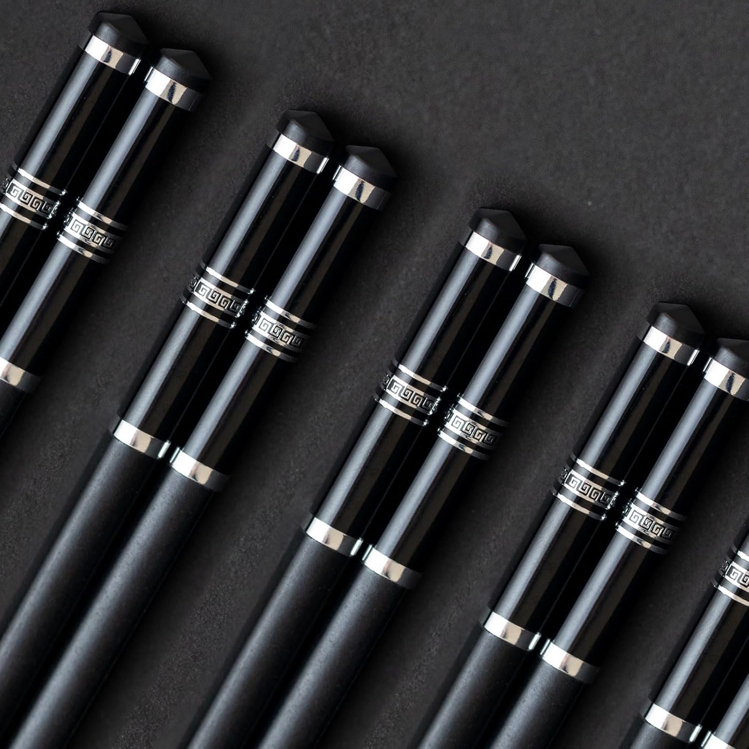 Chopsticks Reusable 5 Pairs Fiberglass Chopsticks Dishwasher Safe Square Lightweight Non-Slip Chop Sticks Set (silvery)