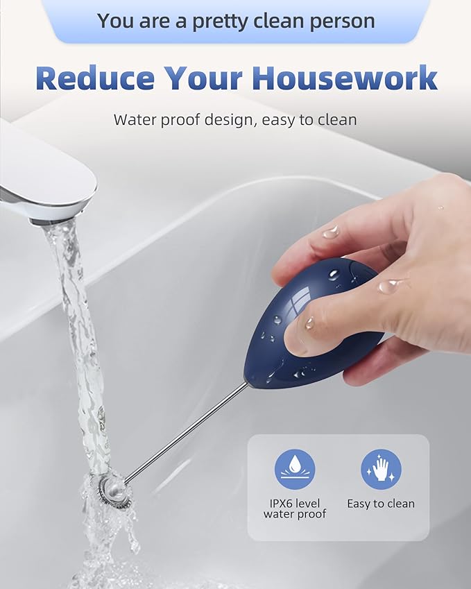 Milk Frother Handheld with Case,USB C Rechargeable Frother Wand for Coffee, Portable Electric Whisk with Stand,Waterproof Hand Drink Mixer Travel for Lattes, Cappuccino, Matcha, Egg (Navy blue)