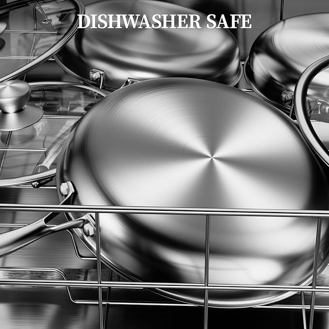 - 【Healthy and Safety Stainless Steel Frying Pan】Stainless steel skillet is made of food-grade stainless steel, which is very durable and corrosion-resistant, and won't react with food, ensuring healthy cooking. Our cookware is dedicated to a healthier lifestyle for you and your family