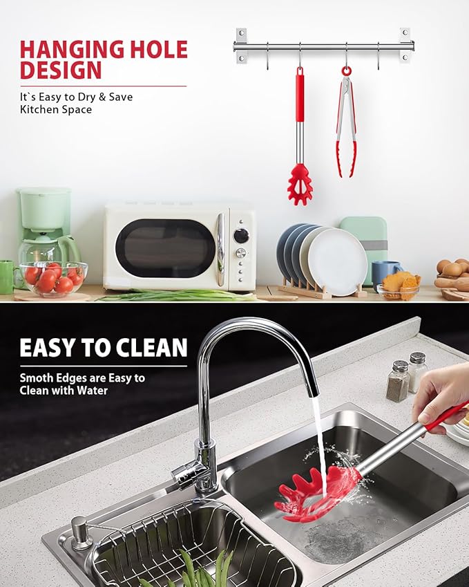 - Silicone Pasta Tong: We pay more attention to the safety of product materials. Our kitchen utensils are made of food-grade silicone, free of BPA.The design of the tooth-shaped heads makes it easier about you to pick up the spaghetti without dropping it