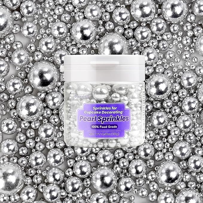Dazzjoy Silver Pearl Sugar Candy Sprinkles, Edible Pearl Mix Size, 4.58oz, Cake Decoration & Cake Toppers, Baking Cake Decorations, Wedding Party Valentines Easter Supplies