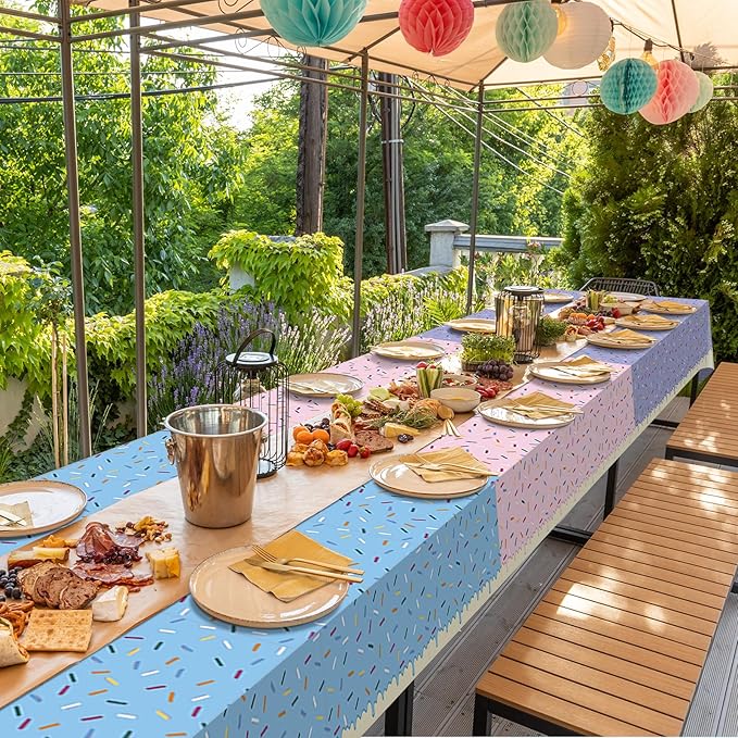 - large size: these sprinkle ice cream disposable tablecloth measures 54×108 inches, which fits most rectangles 8-10 seat tables, making it possible for your family and your friend to enjoy the delightful party.