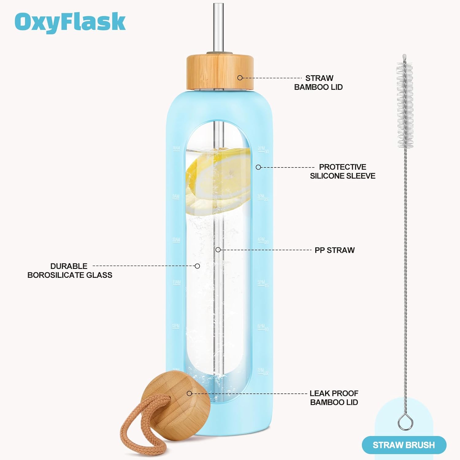 - TRACK DAILY HYDRATION GOALS: Stay on top of your water intake with this glass water bottle with time marker, featuring clear volume indicators. Whether you're at work or exercising, it’s a simple, effective tool to meet your health and hydration goals.