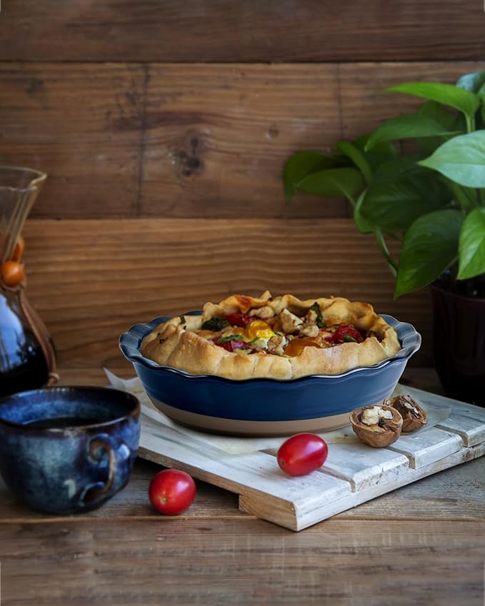 - 🌊Elegant Wavy Edge Design🍮: NUTRIUPS Deeper pie pan of wavy rim, classic contrast color of blue and terra cotta, helps you make a nice dessert with great look and taste.No doubt that it is the appropriate present to your family or friends on Mother’s Day, Christmas, Birthday, Wedding