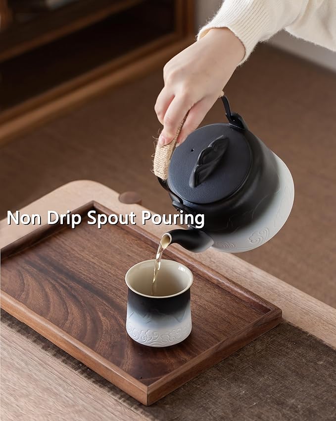 - MATTE VINTAGE JAPANESE TEAPOT SET: What a unique gradient color ceramic teapot set this is! The teapots are embossed with a mountain scene like a piece of art on the table. The matte glaze is hand-painted by artisans and contrasts with the glossy, smooth beige interior, creating a sense of stability and elegance.
