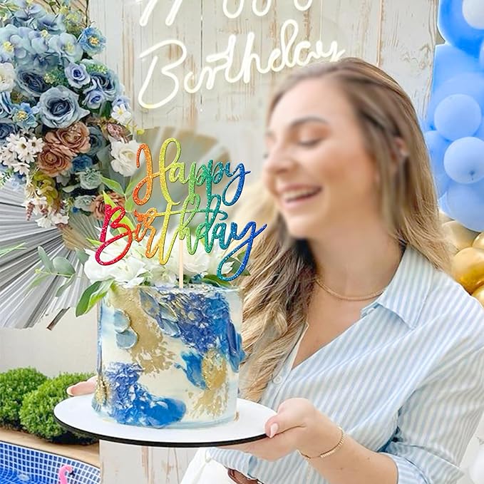 ZHUOWEISM 1 PCS Happy Birthday Cake Topper Glitter Happy Birthday Cake Pick for Celebrating Happy Birthday Anniversary Theme Party Cake Decorations Supplies Colorful