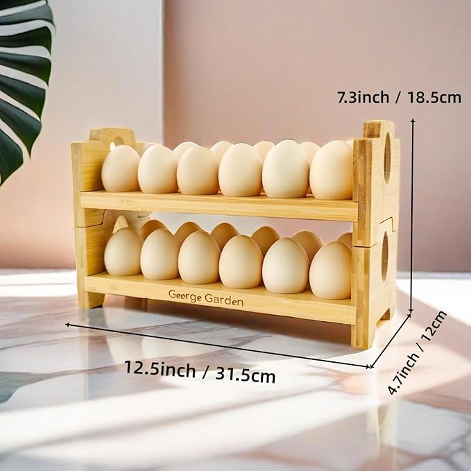 - UNIQUE BAMBOO EGG HOLDER - This egg holder is crafted from bamboo wood, which not only serves well as an egg tray holder, effectively saving valuable space, but also is an ideal rustic decoration for your kitchen countertop.