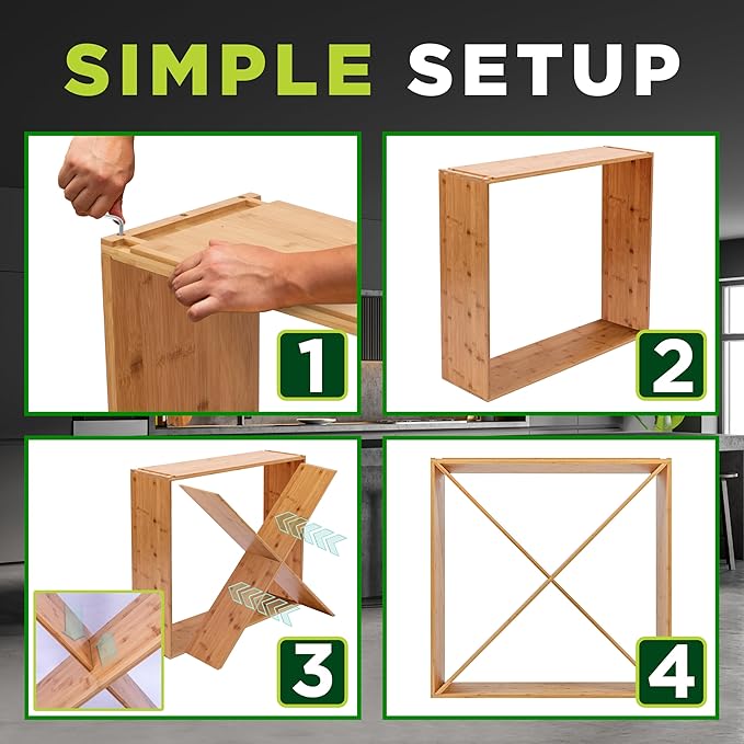 - SLEEK NATURAL FINISH: Elevate your ambiance with the natural beauty of bamboo wood wine rack. The sleek x-frame cube, natural finish adds an aesthetic touch to your home bar, kitchen, dining room, or wine cellar, an enhancement to your space.