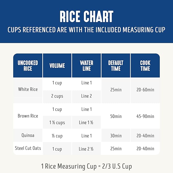 - EASY ONE-TOUCH COOKING: One-touch cooking for White Rice, Brown Rice, Quinoa, and Steel Cut Oats - consistently perfect results.