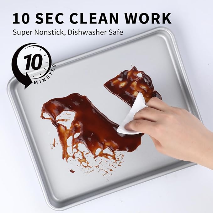 - 🍪Non-stick Baking Sheets for Oven - Including 2pcs quarter baking pans. (SIZE: 11 x 9 x 1 inch) with durable nonstick coating which helps ensure quick effortless food release. Our cookie baking sheets are 0.8MM thicker. The design can help heat distribution quickly and evenl.