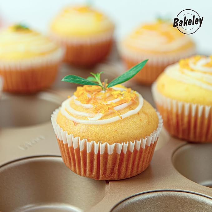 Muffin Cake Pan, 12-Cavity Non-Stick Cupcake Pan Bakeware for Oven Baking Set of 2 (Champagne Gold)