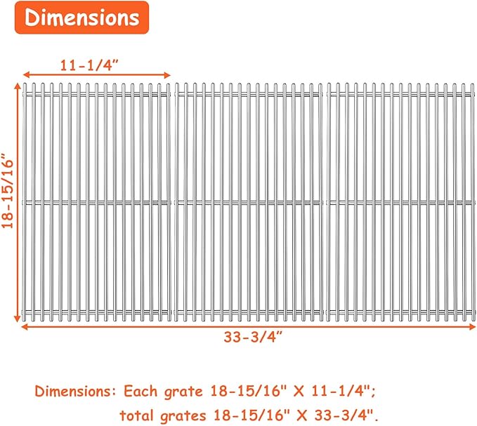 - DIMENSION & PACKAGE: Each cooking grill grate is 18.7” x 11.1”, 18.7” x 33.3” for total. Comes with 3 stainless steel cooking grates