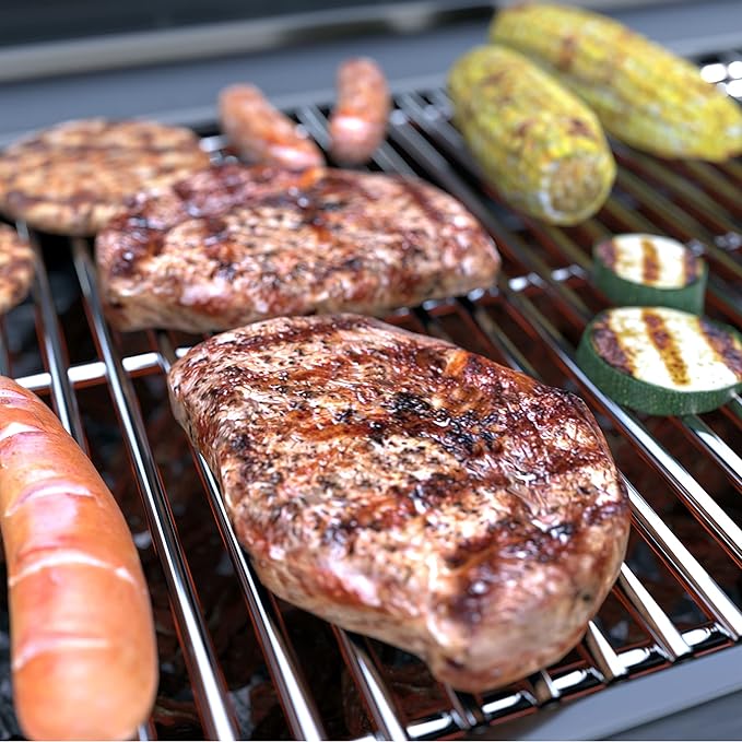 - Easy to Clean: The stainless steel grille has smooth surface. Unlike cast iron grills, only brushes can easily keep the grill net clean and tidy. Easier to clean than the cast iron grille with ceramic coating. Try to avoid immersing the grate in water for more than 15 minutes, because this will cause the grate to degrade over time. Always store in a safe and dry place