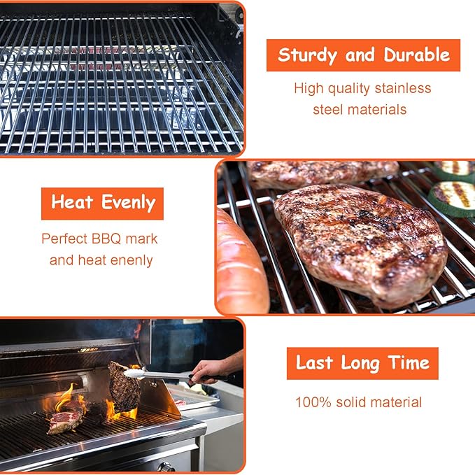 - Material: The grill grates replacement for weber genesis II/LX 400 grates is made of solid stainless steel. There are 17 rods per section, The stainless steel grill grate is not only evenly heated, but also evenly spaced grilles will leave beautiful grill marks on the food, increasing the interest of barbecue
