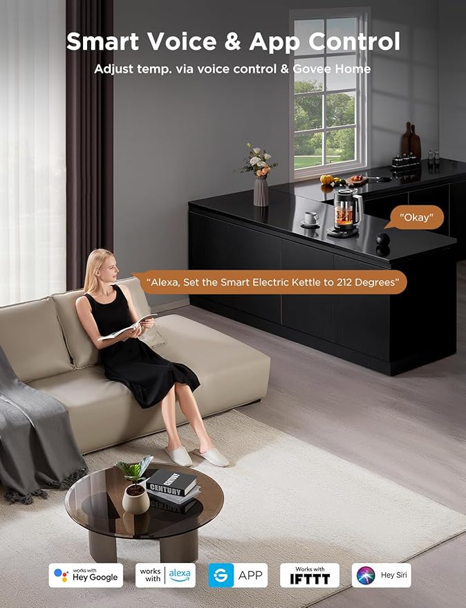 - Smart Control: Connect your electric kettle to the app to schedule and adjust the temperature anytime. When boiled you will receive a notification. You can also voice control the electric tea kettle via Alexa & Google Assistant for added convenience.