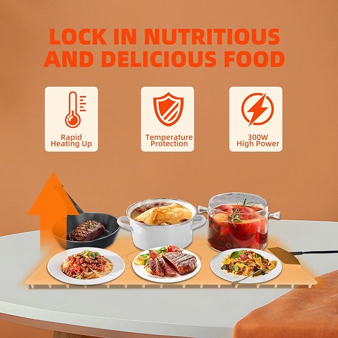 - 【Fast Full-Surface Heating】Equipped with advanced full-surface heating technology, this food warming tray heats up in just 30 seconds, evenly warming every corner of the food warming mat . No more cold spots—your dishes stay perfectly warm and delicious, ready to serve at any time.