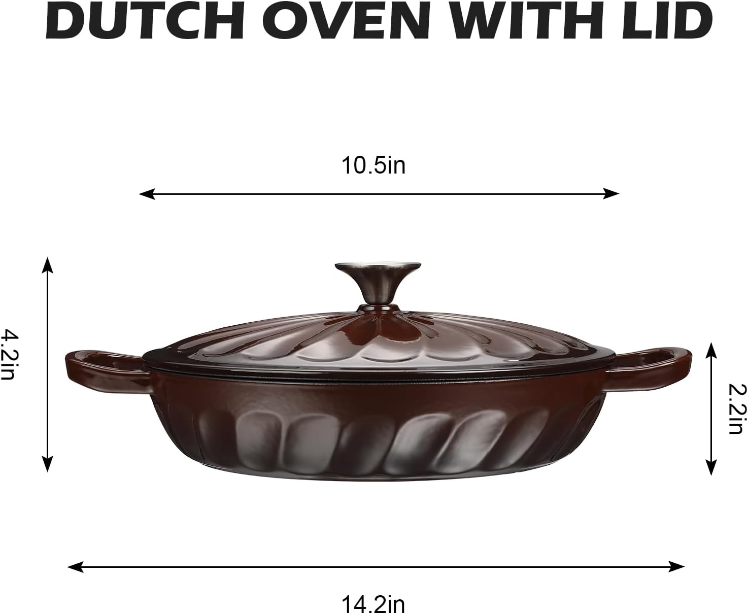 Enameled Cast Iron Braiser, 3.8 Quart Enamel Dutch Oven with Handles, Cast Iron Braiser Pan with Lid,Enameled Cookware (Brown)