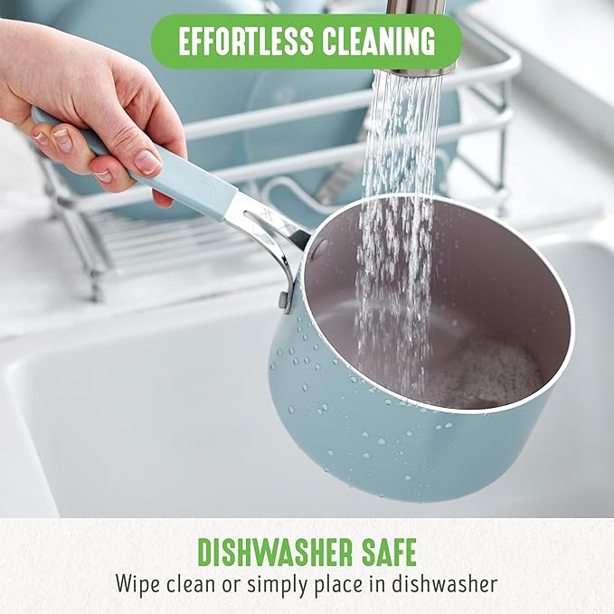 GreenLife 2 Quart Nonstick Saucepan with Lid, Lightweight Healthy PFAS-Free Milk Pan, Dishwasher & Oven Safe Soup Pan, Durable Body, Silicone Stay-Cool Handle, Easy Release Chef’s Pan, Blue Haze