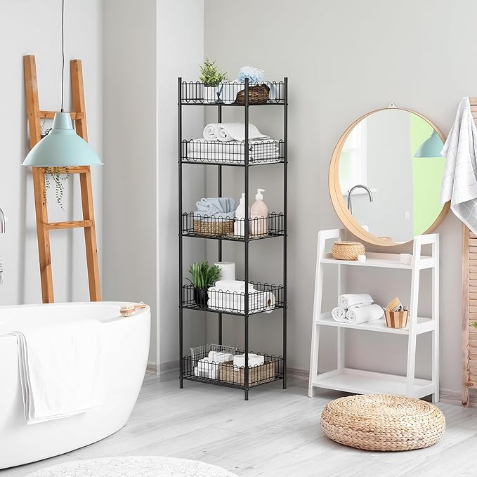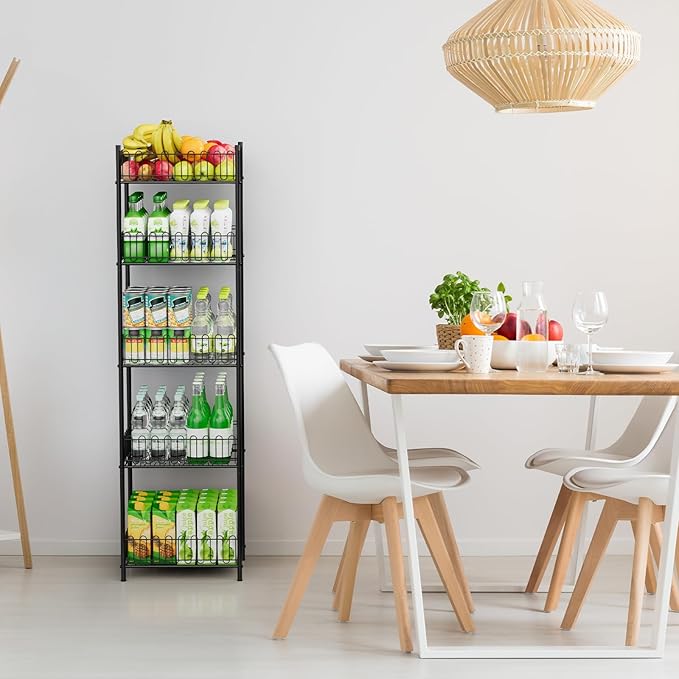 - 【 Excellence Design】Compared to other water bottle storage holders, our 5-tier pantry can organizer has a height of 14.5‘’ on each tier, except for the top tier which stands at 11.2''. The kitchen shelf organizer accommodates various items from small soda cans to bulky water bottles, even wine or beer, offering more flexibility in storage. The 4.5'' guardrail design protects against the bottle's accidental spills or falls.
