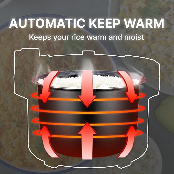 - Automatic Keep Warm: Automatically switches to warming mode after cooking, keeping your rice at the perfect serving temperature.