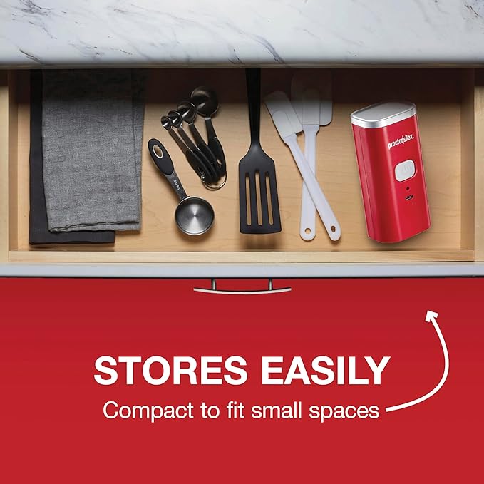 Proctor Silex Automatic Electric Can Opener, Hands Free Cordless Operation & USB Rechargeable, Self-Aligning, Cut Smooth Touch Lid Edges, Compact and Easy to Store, Red