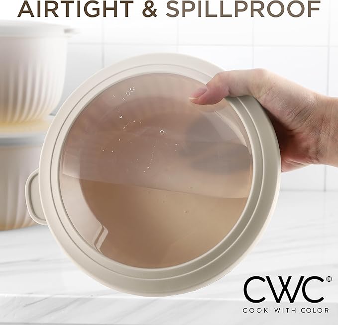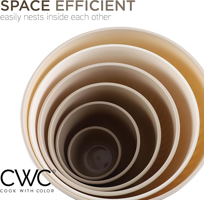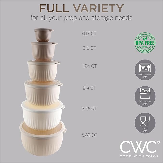 - Cook with Color 12 piece plastic mixing bowl set - non slip bowls with lids; easy to clean, sturdy mixing bowls.