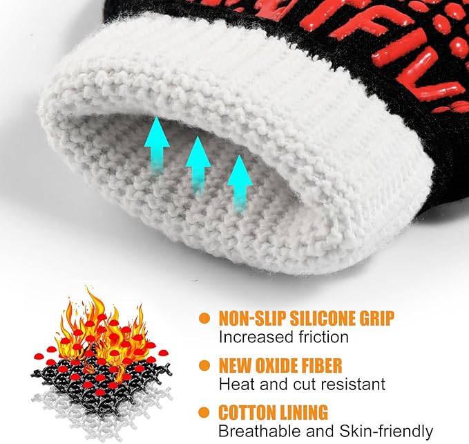 BBQ Gloves, Oven Gloves, 1472°F Extreme Heat Resistant Barbecue Gloves, Silicone Non-Slip Oven Mitts, Kitchen Gloves for Cooking, Grilling, and Baking (Red)
