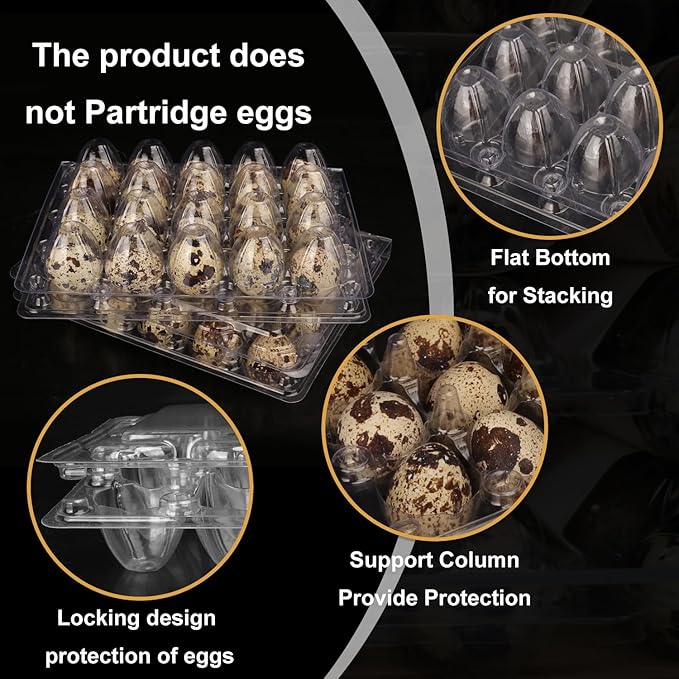 - 【Clear & Visible】The clear plastic quail egg cartons makes it easy to observe the situation of the quail eggs at anytime. Very suitable for quail eggs storage, produce stands and grocery stores.
