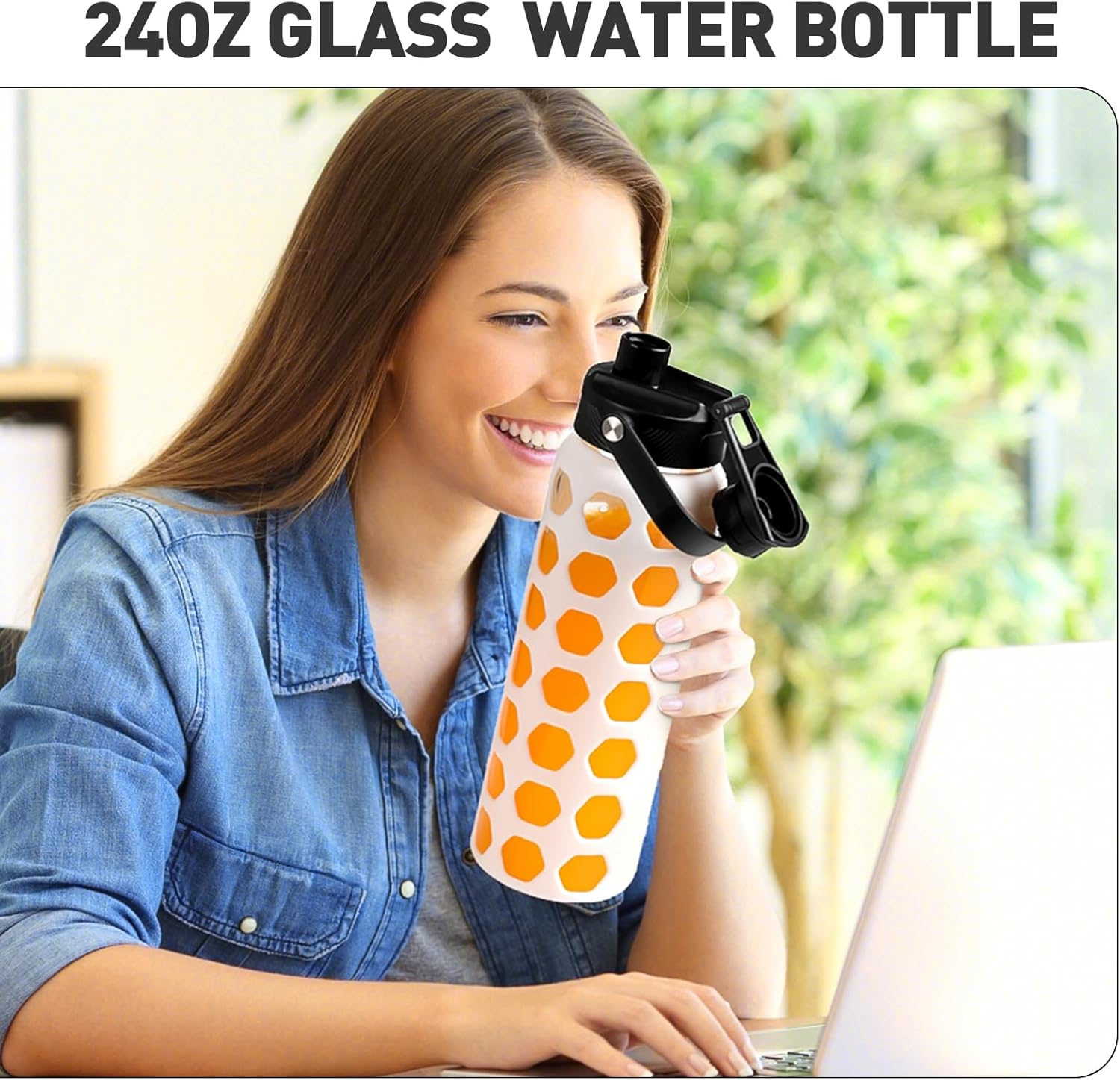 - GLASS WATER BOTTLES WITH TIME MARKER:MUKOKO 24oz glass water bottle with time marker preserves the purity of water.This is a very handy way to keep up with daily water intake,stay hydrated and healthy.