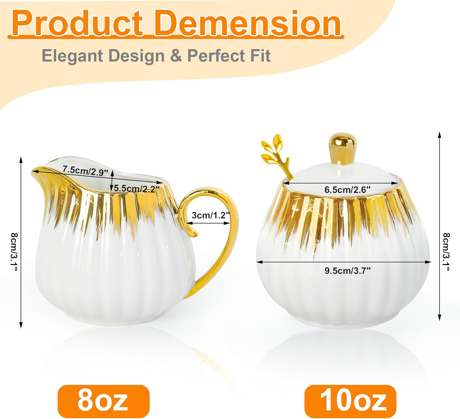 - 【Just the Perfect Size】The Sugar Bowl is 3.7" wide & 3.9" tall, making it ideal for holding about 10 oz of sugar. Meanwhile, the Cream Pitcher in this set measures about 3.1" tall & 2.9" wide, that holds approximately 8 oz of cream.