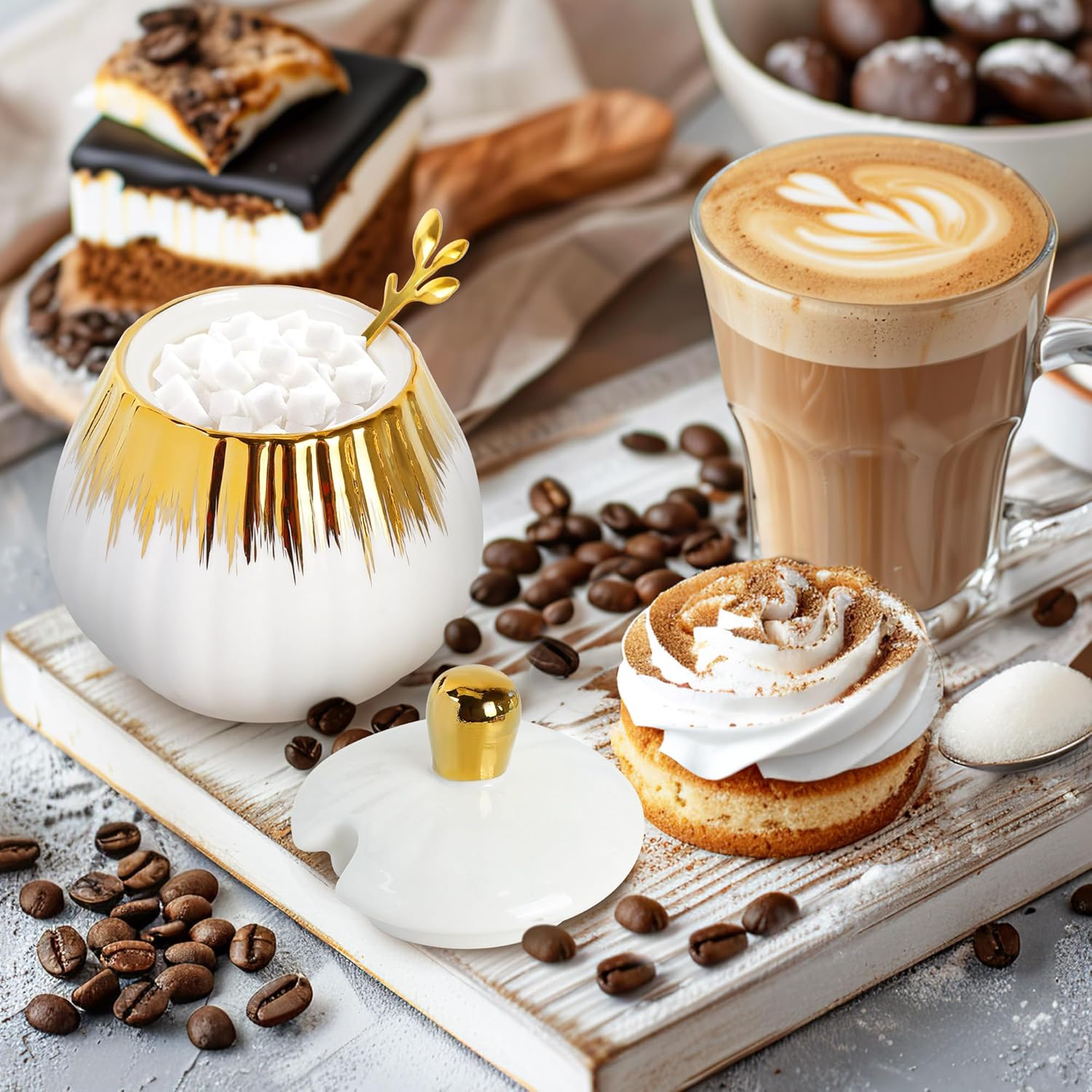 - 【High-Quality Material】Our sugar and creamer set is made of fine ceramic and exudes sophistication. With its smooth glaze and delicate gold trim, it adds a touch of luxury to any table setting.