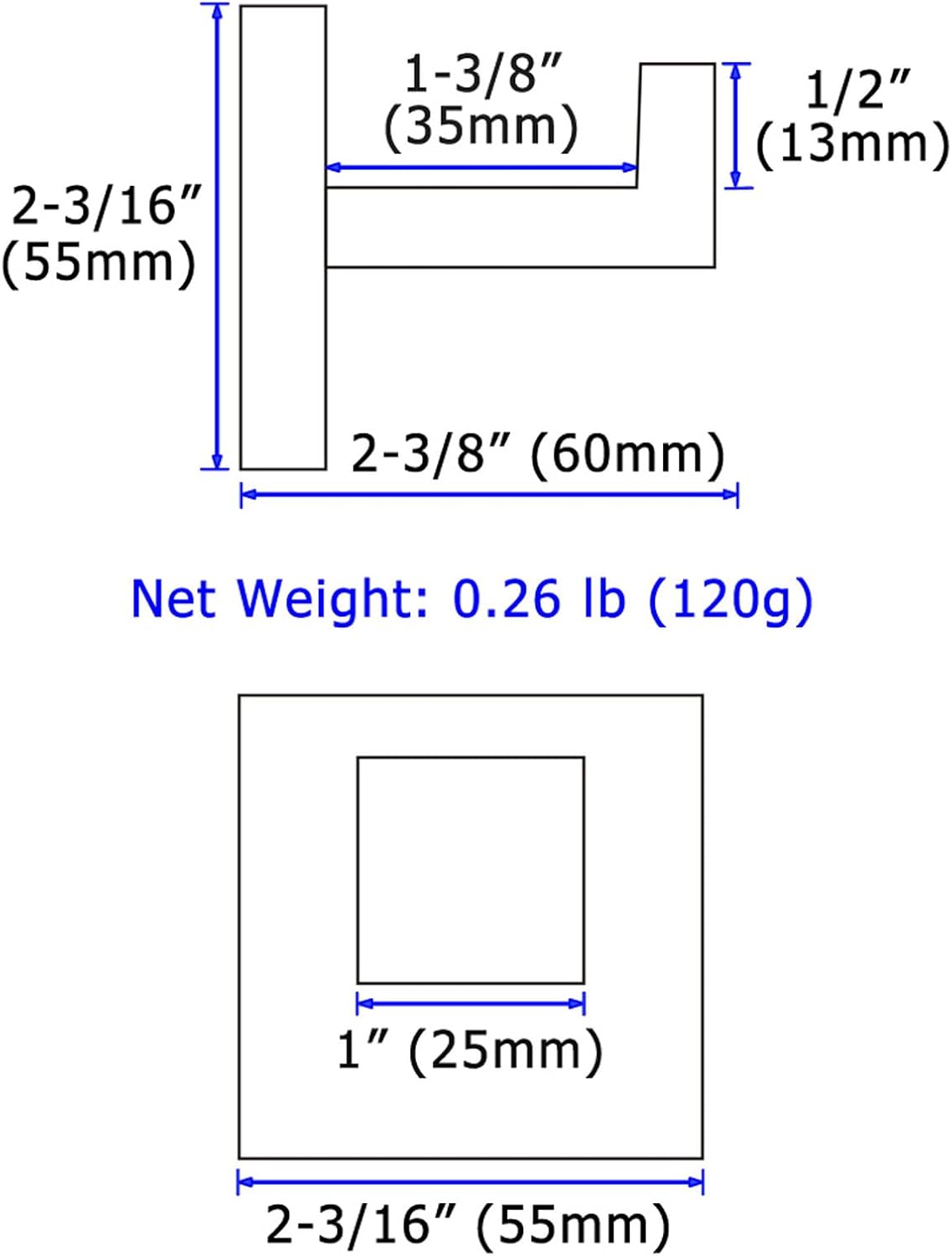 - CONVENIENT SQUARE HOOK: 1/2 inch (13mm) height of the hook end, easily hold robes or towels for easy access, things stay in place with no sliding off