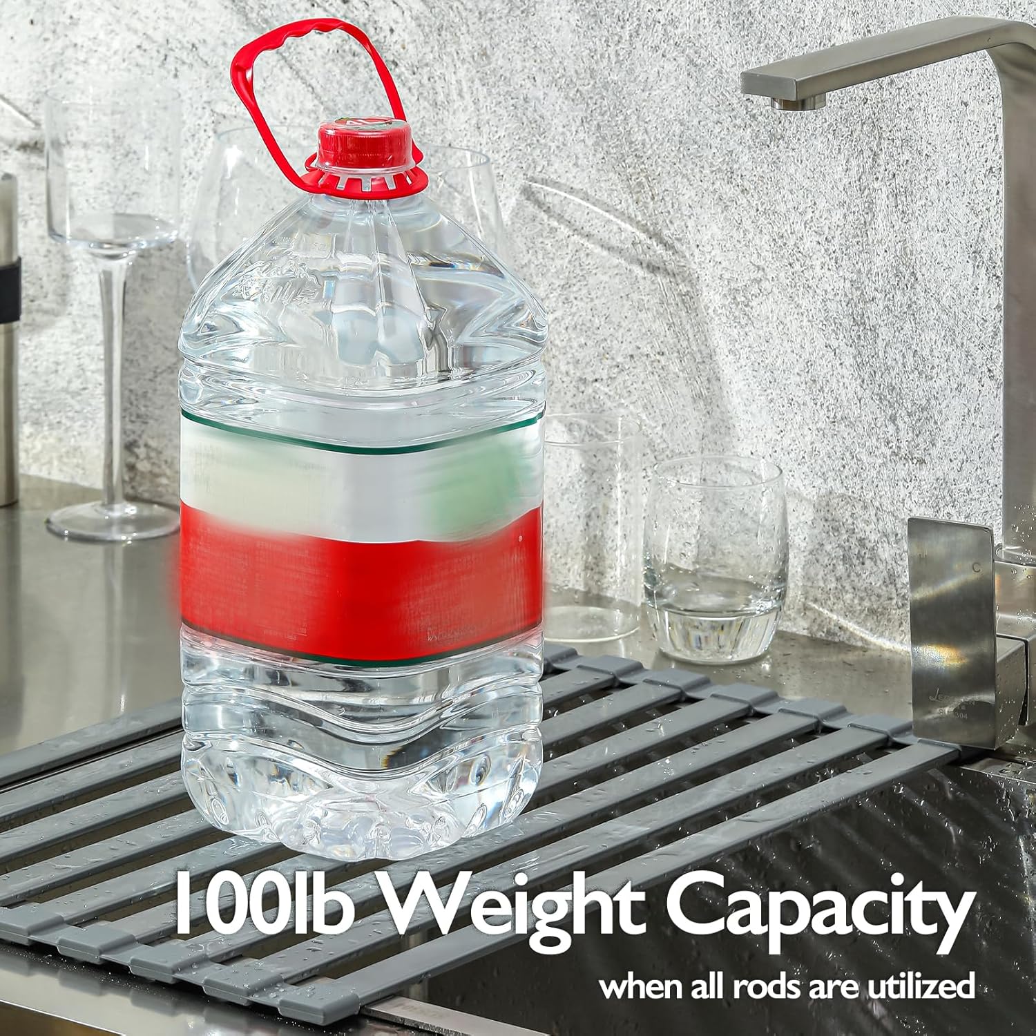 - OVER THE SINK DRYING RACK : 17.9(L) x 13W) Suitable for most kitchen sinks and counter..Please check your sink measurements and choose the right size before purchasing the roll up dish drying rack over sink!A great addition to kitchen accessories and apartment necessities. Great kitchen gadgets for a tidy kitchen