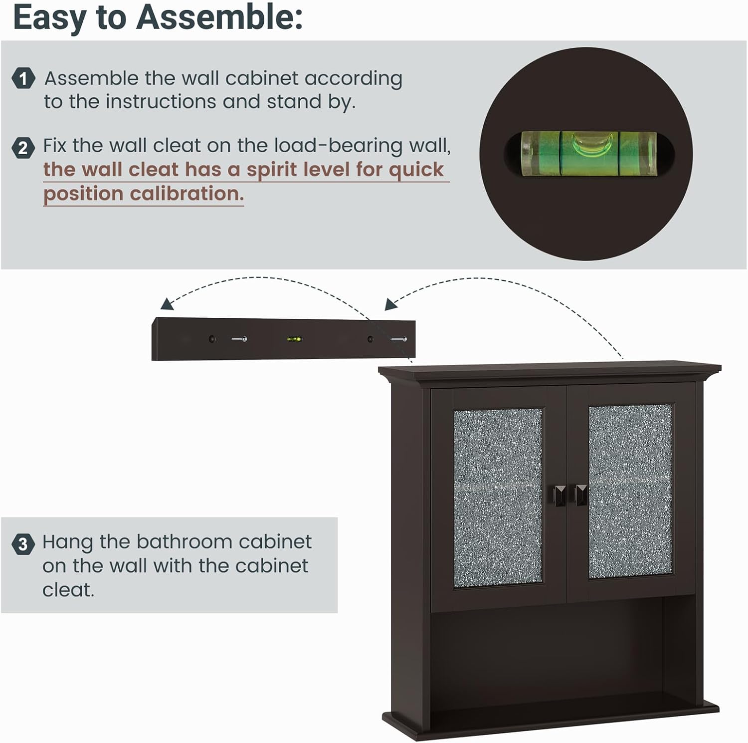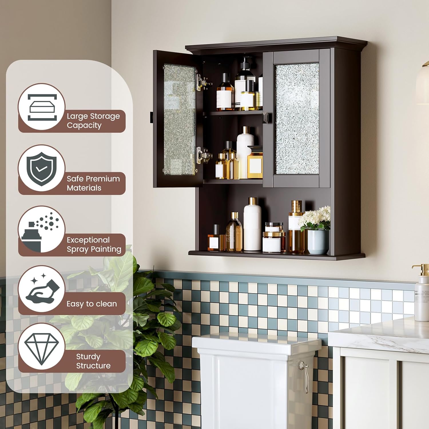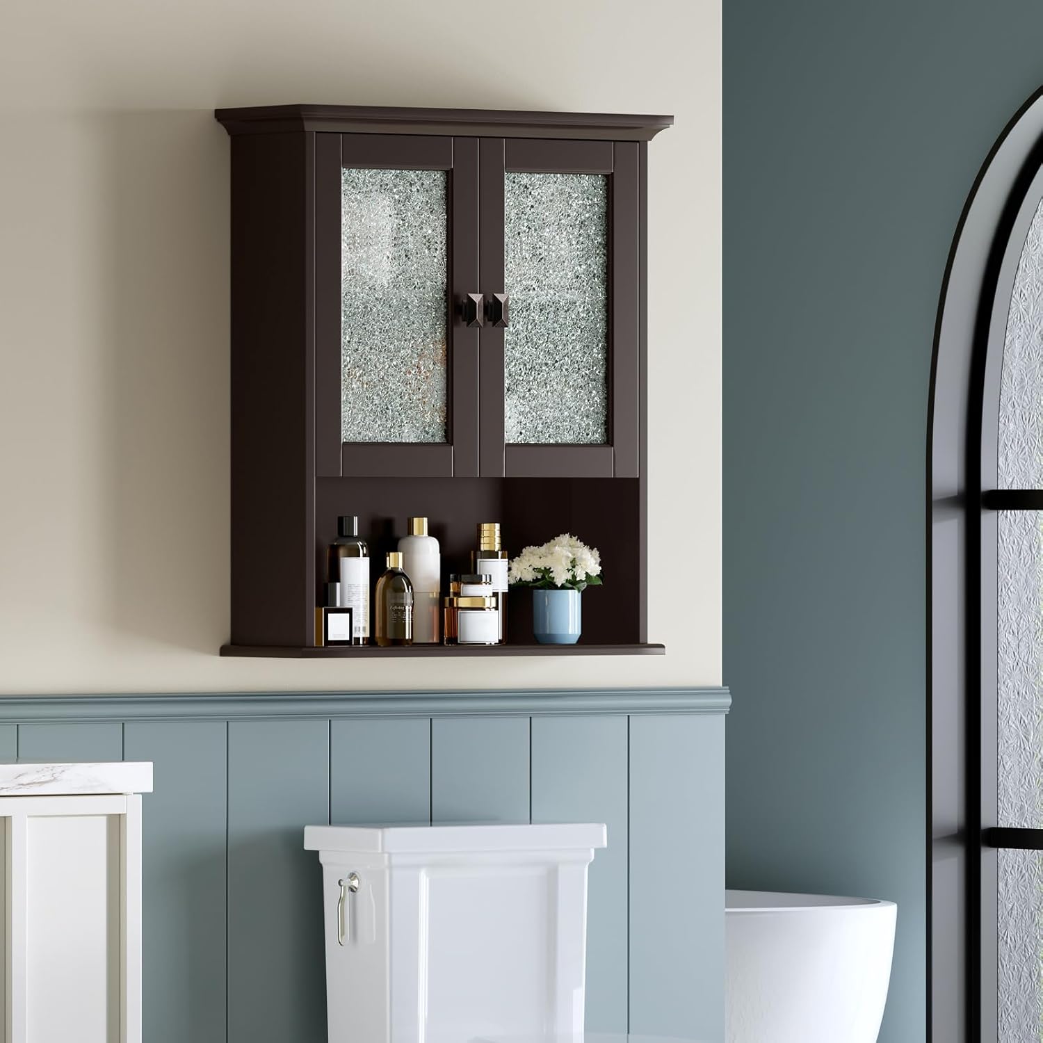 Bathroom Cabinet Wall Mount, Medicine Cabinet Over Toilet Storage Cabinet with Glass Door Build-in Spirit Level Cupboard Hanging Storage for Bathroom Laundry Kitchen Living Room (Espresso)