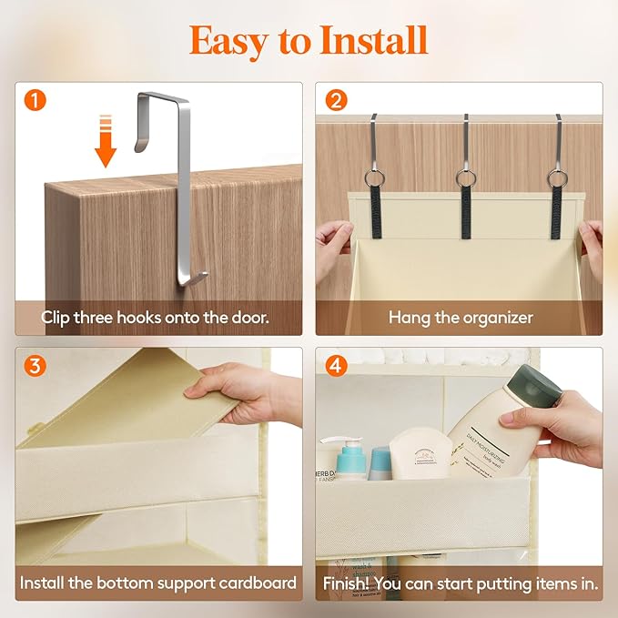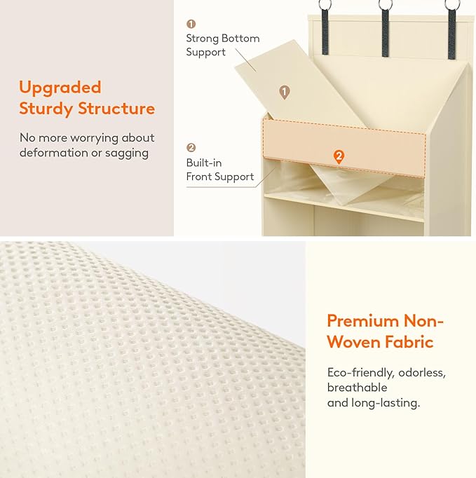- Premium Material & Sturdy Structure: Lifewit hanging over the door organizer is crafted from high-quality non-woven fabric, making it odorless, breathable, and tear-resistant. The thickened cardboard support insert ensures its sturdy structure and anti-tilt, with a heavy load of 40 lbs(18kg), perfect for long-term use.