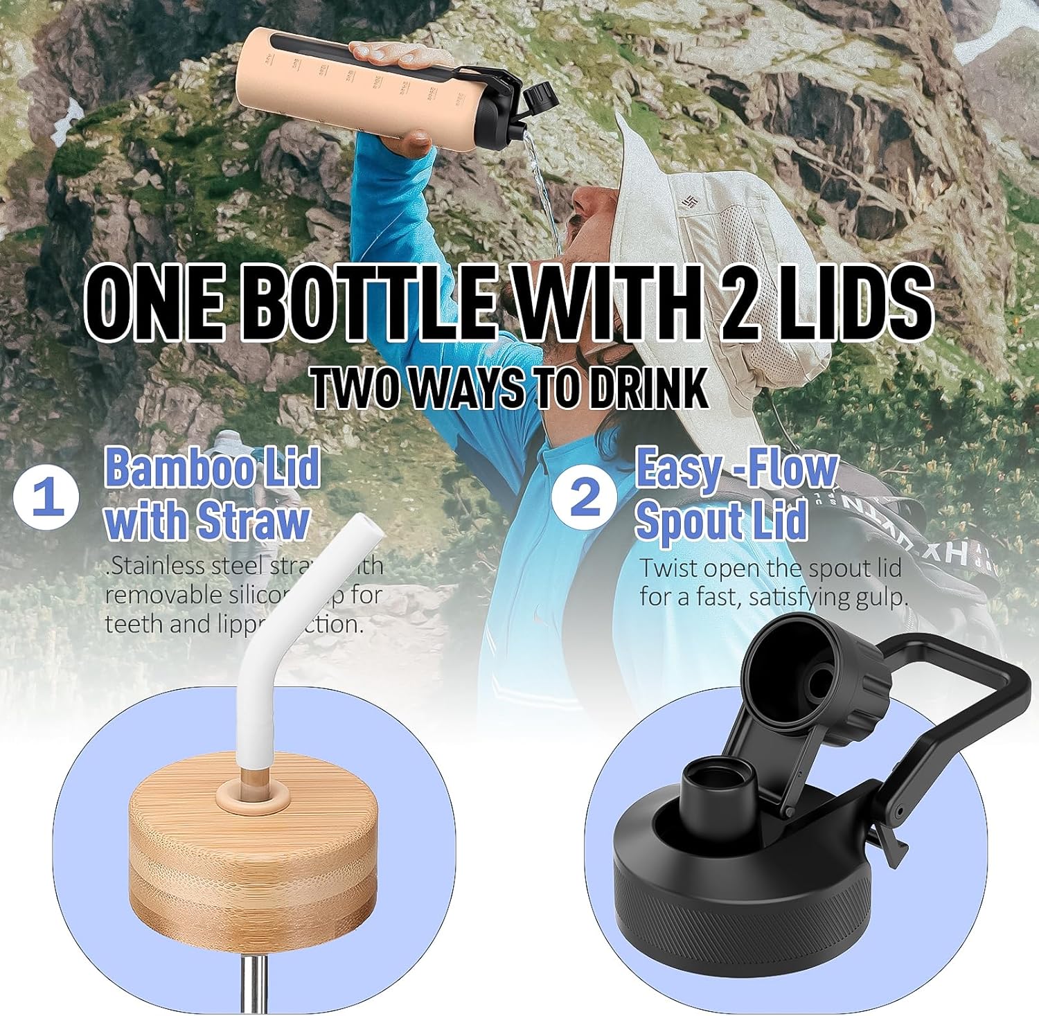 - DURABLE HANDLE & TIME MARKERS- Our premium water bottle with time marker with an ergonomic handle is sturdier than standard designs, ideal for outdoor activities like hiking where it can be securely attached to a backpack. Additionally, our big water bottle features hourly time markers to track daily water intake, supporting your health goals wherever you go.