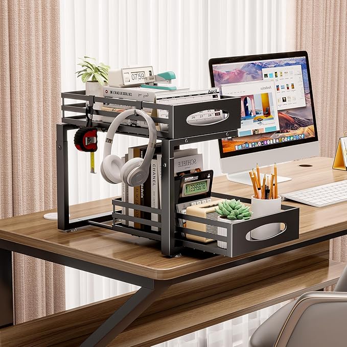- 【Keep Tidy】The under sink organizer help maintain neatness in your under sink cabinet, pantry room, countertop, etc., while maximizing space utilization in various areas such as kitchens, bathrooms, garages, laundry rooms, offices, and storage rooms
