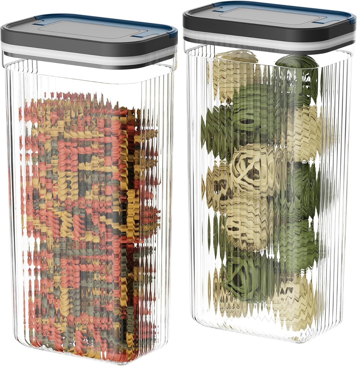 - Generous Storing Size- Set includes two large 3.2 -liter (2.82 QT/ 13.53 Cups/ 0.85 Gallons), making it ideal for wide range of shape pasta noodle, jumbo cereals, snacks and baking ingredients. Tall in 12" cater to bigger pantry, cabinet organization and efficient kitchen space utilization