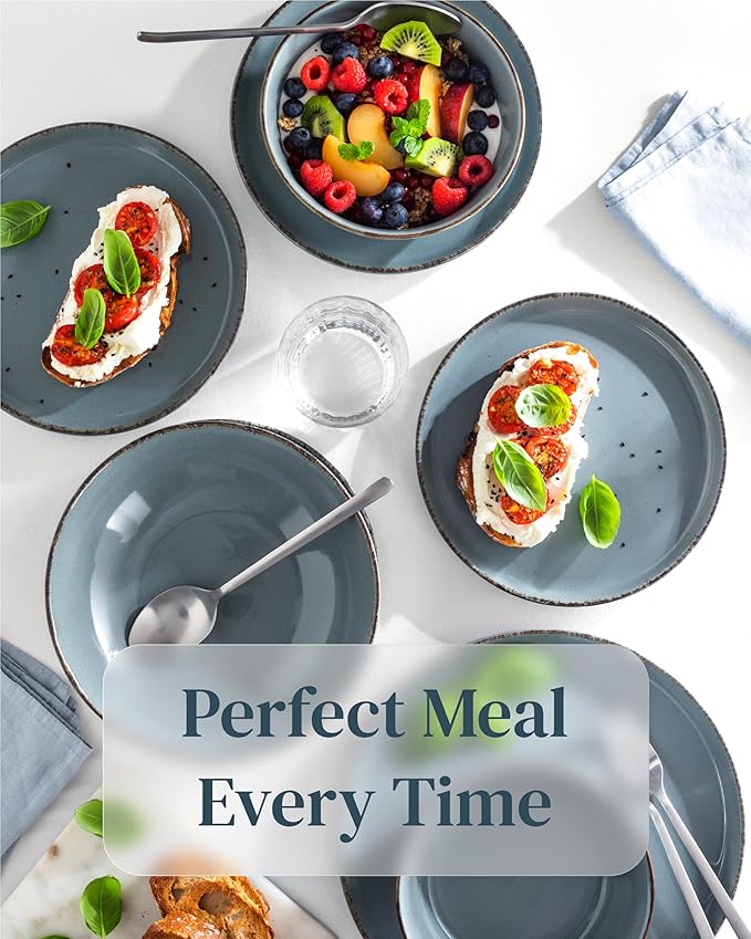 - ✅ COORDINATE YOUR TABLEWARE: The smokey blue color and rustic design offer a unique and versatile palette that complements any home décor, allowing for seamless integration with other kitchen and dining items.