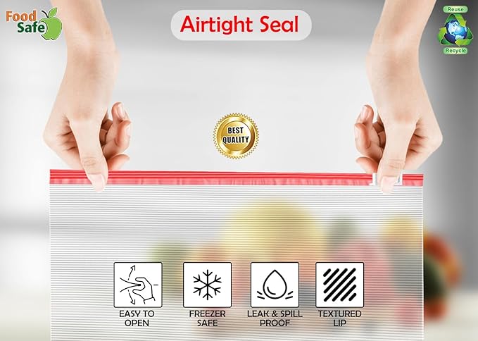 - PERFECT DIMENSIONS: These gallon ziplock bags measure 12 x 14 inches and have a total capacity of 135.25 fl oz, perfect for keeping your food fresh for longer, whether in the freezer, fridge, or on the go!