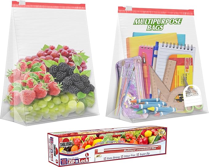 - A MUST IN YOUR KITCHEN: Whether you’re looking for a way of keeping your kitchen and household more organized or you simply want to make sure those delicious leftovers stay fresh for longer, the Shalimar reusable slider bags are the perfect choice!