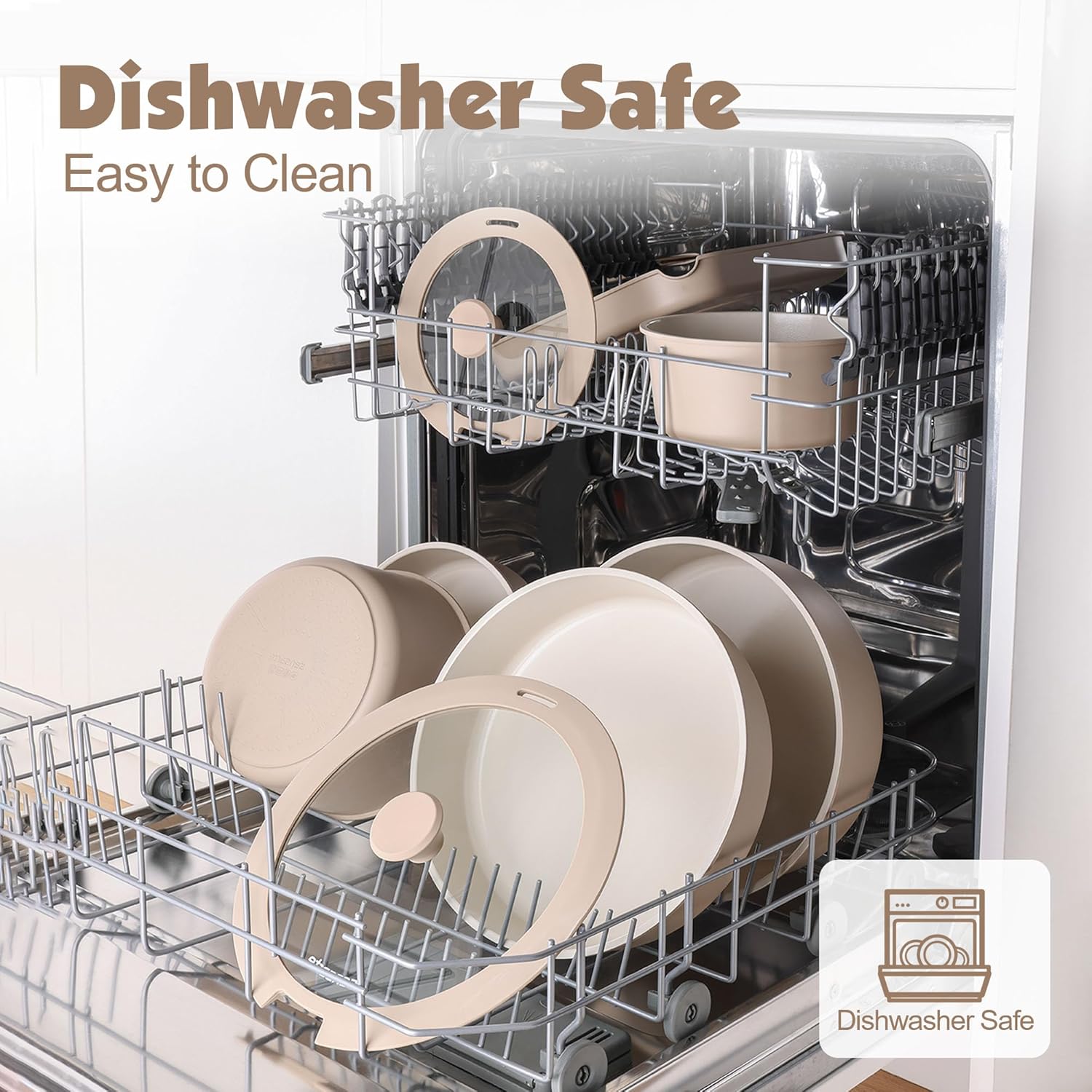 - Dishwasher Safe - Cleaning is a breeze. Professional wear-resistant design for the bottom of the pan set that prevents black residue even when used in the dishwasher.