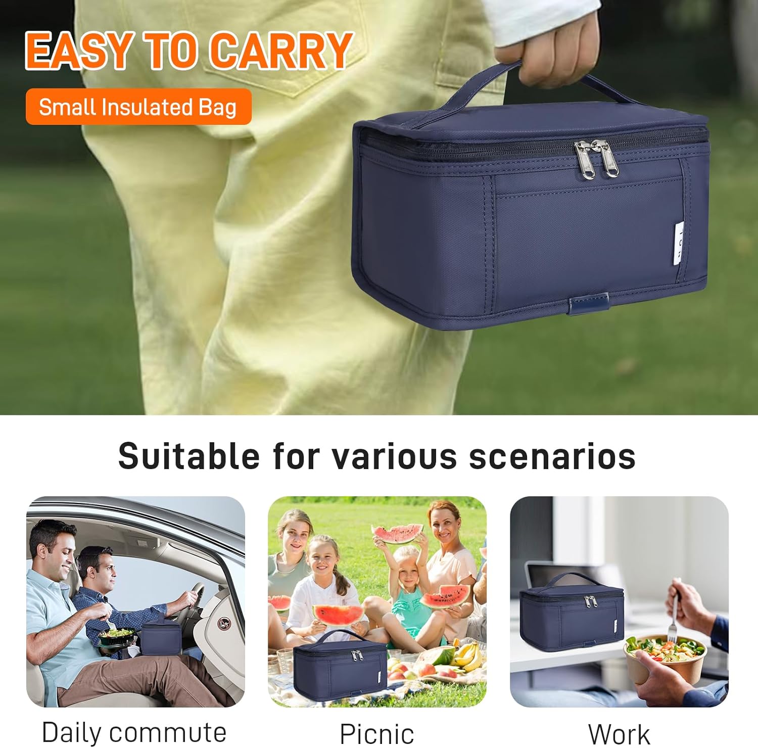 NOL Natural Organic Lifestyle Small Lunch Bag Mini Lunch Box Insulated Lunch Bag for Men/Women Leakproof Cooler Tote Bag Lightweight Nylon Waterproof Lunch Box For Work, Navy blue