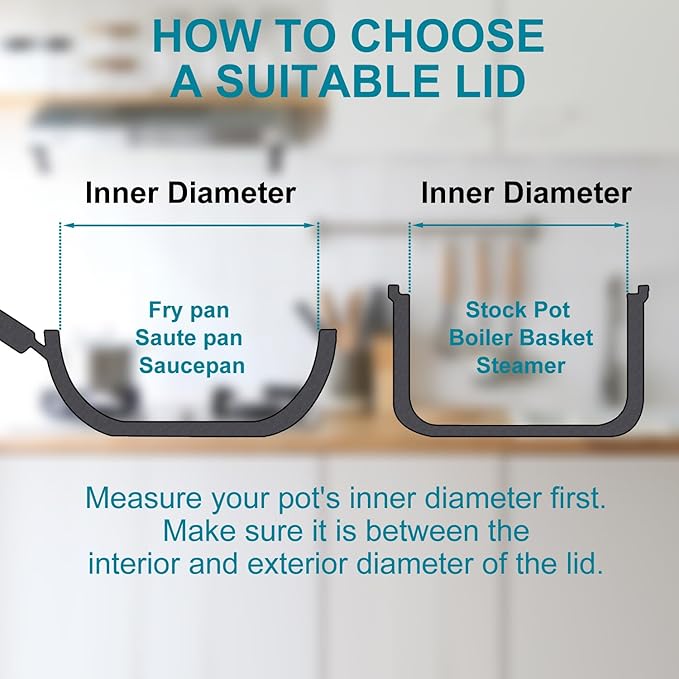 - Universally fits any round fry pan or saucepan with a matching circumference.