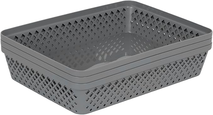 - BULK STORAGE SET - Package contains 3 open storage bins to easily keep supplies organized and separated. Create your own divided storage system by using multiple plastic baskets together.