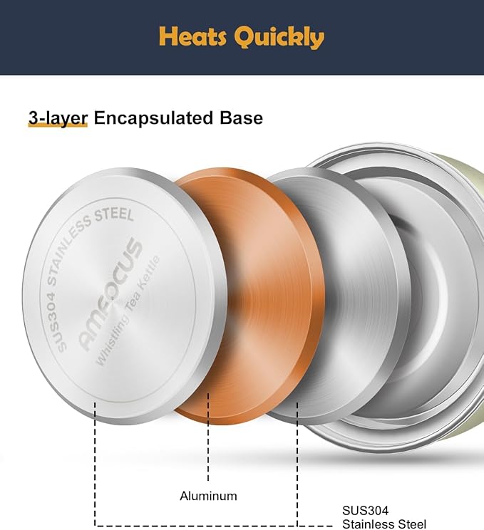 - ✔Loud Whistling Teapot: Our whistling tea kettle have loud & automatic vivid whistles, which will catch your attention when you focus on housework,movies,cooking in next door. It prevents you from forgetting to turn off the stovetop that causing water to be boiled dry or over-boiling.(NOTE: Pls keep the water level is below the spout of the kettle to ensure that the whistle is working properly.)